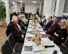 i aktywny udział w życiu środowiska i parafii. Głos zabrali m. in. ks. kustosz Janusz Kowalski, z-ca wójta p. Cezary Janiak oraz dyrektor GOK p. Monika Galankiewicz. Dużą, jednocześnie miłą niespodziankę sprawili państwo Klaudia i Michał Matusiakowie, którzy na codzień prowadzą Pracownię Kamieniarską. Są oni wykonawcami nowego, pięknego nagrobka kapłanów spoczywających na cmentarzu w Świnicach Warckich. Większość prac została wykonana przez nich bezinteresownie, a na zebraniu dołożyli kolejną „cegiełkę” do tego dzieła. Dziękujemy!