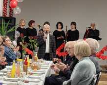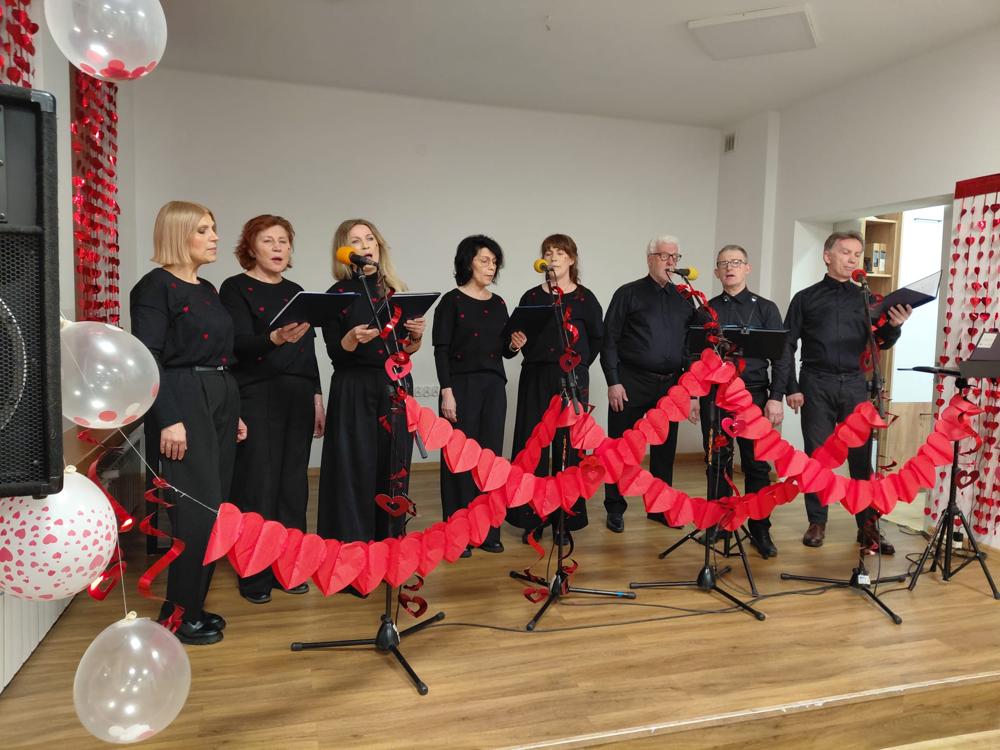 i dobro, którym powinniśmy dzielić się z tymi, których spotykamy na swojej drodze. Zespół zaprezentował się w pięknych „walentynkowych” strojach i „serduszkowej” scenografii. Koncert zakończył się wielką „burzą braw”.